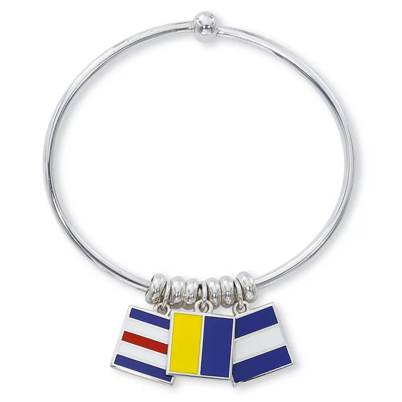 Bracelets Home Women's>Bracelets Sterling Flexible Bracelet Attach signal flags, charms and beads to the comfortable sterling silver flexible bangle. It is flexible and twists on the wrist. (Charms and beads sold separately) SIZES: M/L 8" Long - $50 Reset SelectionSize: Choose ...One SizeNewborn6 months12 months18 months1.5mm22mm33mm5/65mm5mm Oval6mm7mm Oval7mm8mm14mm20mm6 inch6.5 inch7 inch7.5 inch8 inch8.5 inch15 inch15.5" - 17.5"16" Fine18" Fine20" Fine16"16 inch16" - 18"17 inch17" - 18" - 19"17" - 19"18"18 inch18" - 20"19" - 21"20"20 inch20" - 22"24"22 inch24 inch28 inch44.555.566.256.56.7577.257.588.599.51010.51111.51212.51313.5PairSingleMiniTinyXSXS/SSS/MMM/LLL/XLXLXXL2XL3XL30 inch32 inch34 inch36 inch38 inch40 inch42 inch44 inch46 inchPostWireTiny - PostTiny - WireTiny - Yellow GoldTiny - Rose GoldMini - Yellow GoldSmall - Yellow GoldSmall - Rose GoldDouble Old FashionedStemless WinePint GlassesTankards4 Feet5 Feet6 FeetMedium - Yellow Gold¾ inch wide1 ¼ inch wideFine 16 inchFine 18 inchFine 20 inch1 CardSet of 6Set of 35NewportMiddletownPortsmouthVertical BarStud EarringsSKU:Sterling Silver Flexible BanglePrice:$50.00$50.00Quantity: Add to Cart