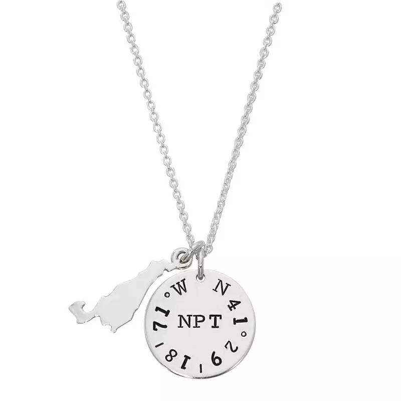 Style Newport's Sterling Silver Aquidneck Island charm with polished finish. Pair it with the Newport Latitude and Longitude charm.