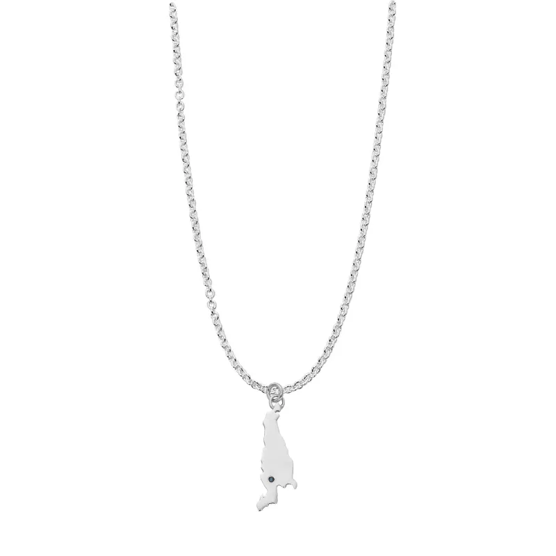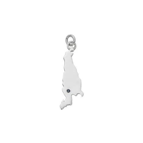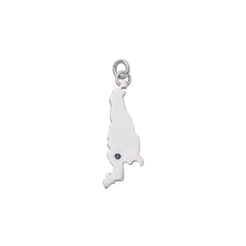 Style Newport's Sterling Silver Aquidneck Island charm with polished finish. Sapphire marking the location of Newport, Middletown or Portsmouth. Newport (photo)