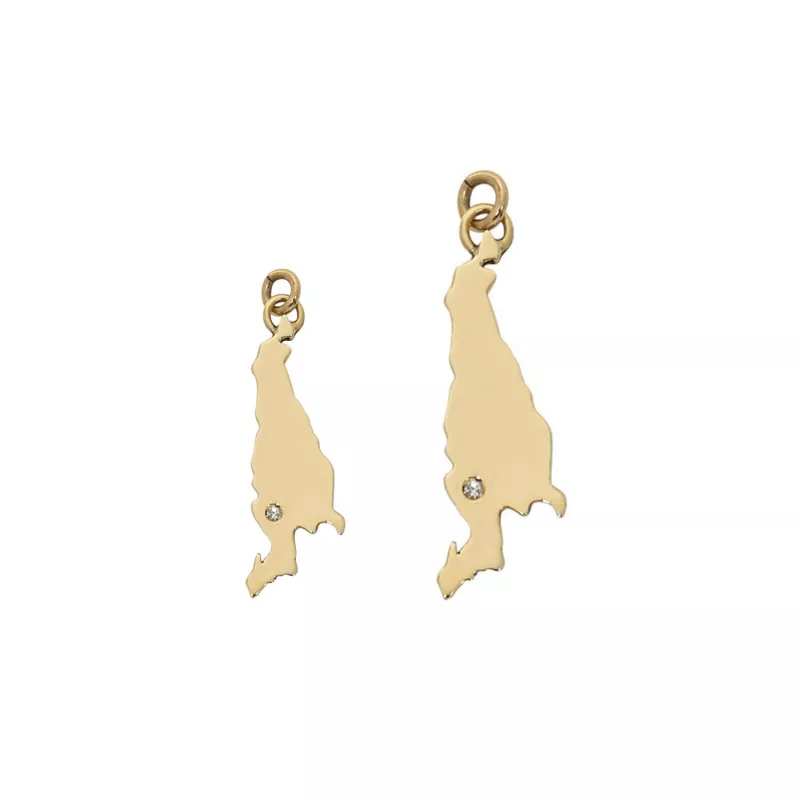 Style Newport's 14k Gold Aquidneck Island charm with Diamond. Diamond marking the location of Newport.