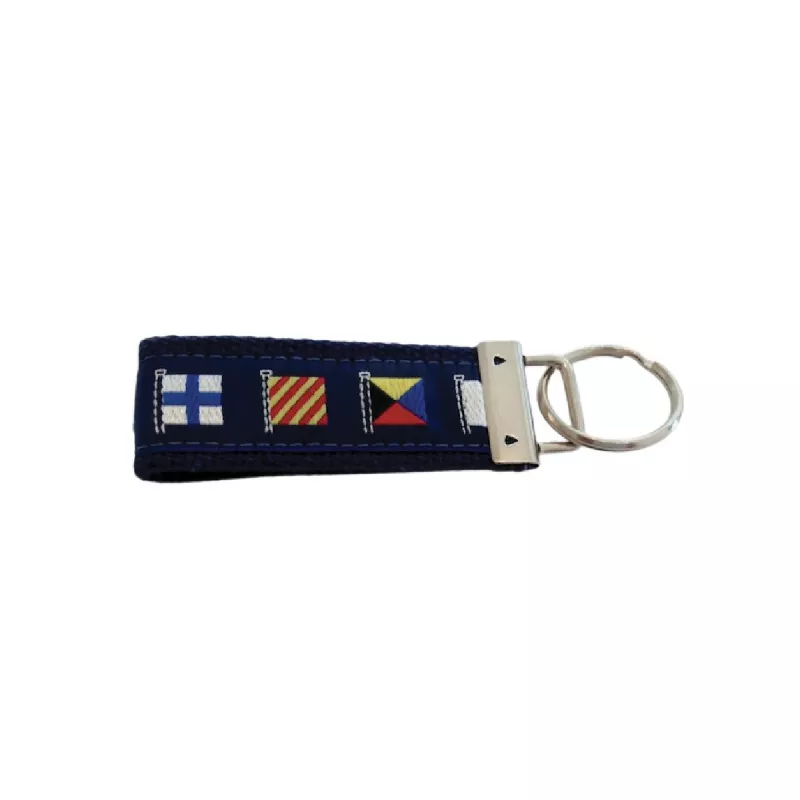 Alphabet Signal Flag Key Ring with seven signal flags visible. They are in alphabetical order and all are different. Call if you would like a particular flag included on the key ring.