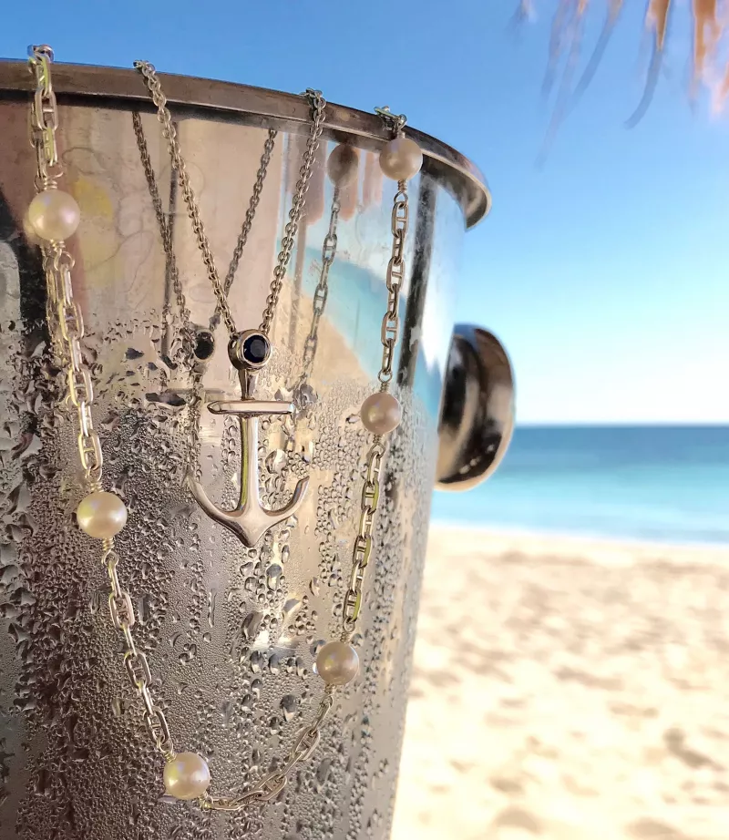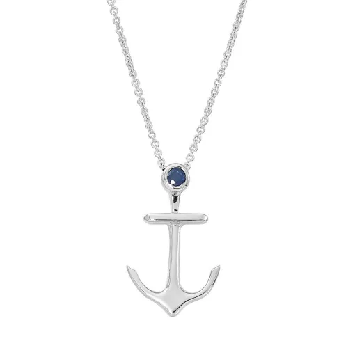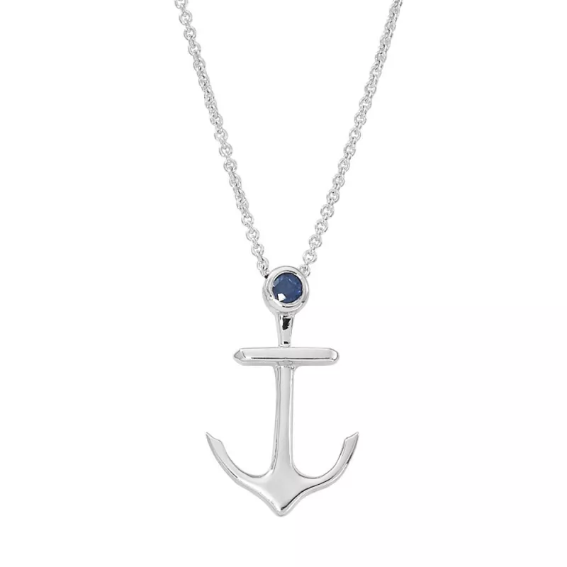 Style Newport's Sterling Silver Anchor and Sapphire Slide Pendant on a 16", 18" or 20" Sterling Cable Chain. Round 3.9mm natural blue sapphire.