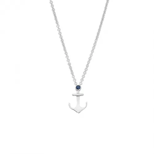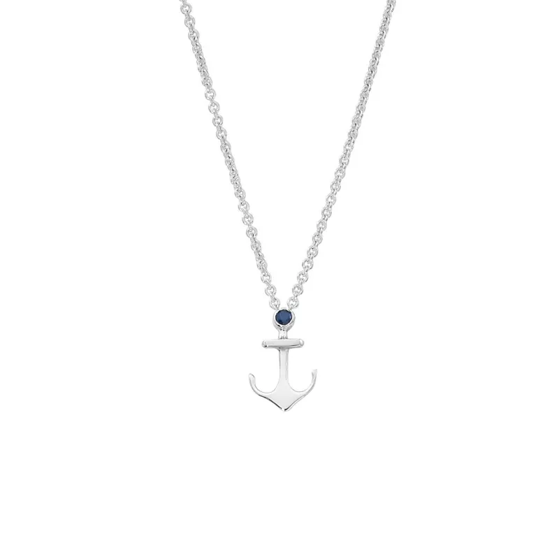 Style Newport's Sterling Silver Anchor and Sapphire Slide Pendant on a 16", 18" or 20" Sterling Cable Chain. Round 2.9mm natural blue sapphire.