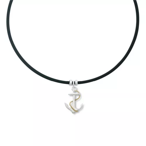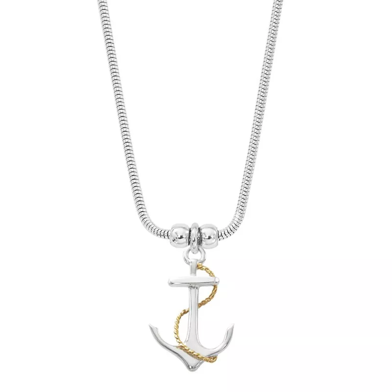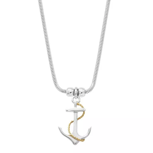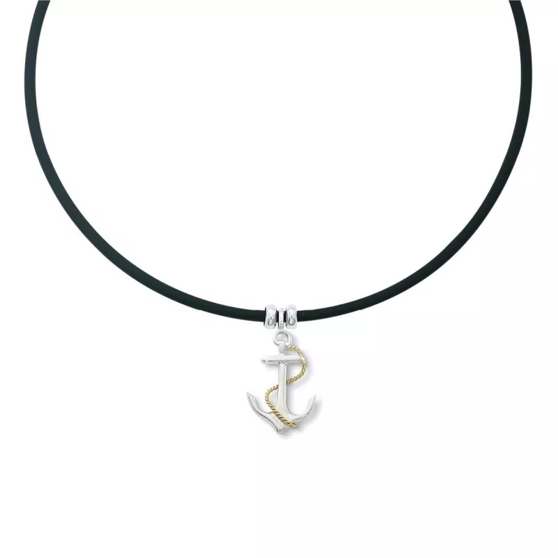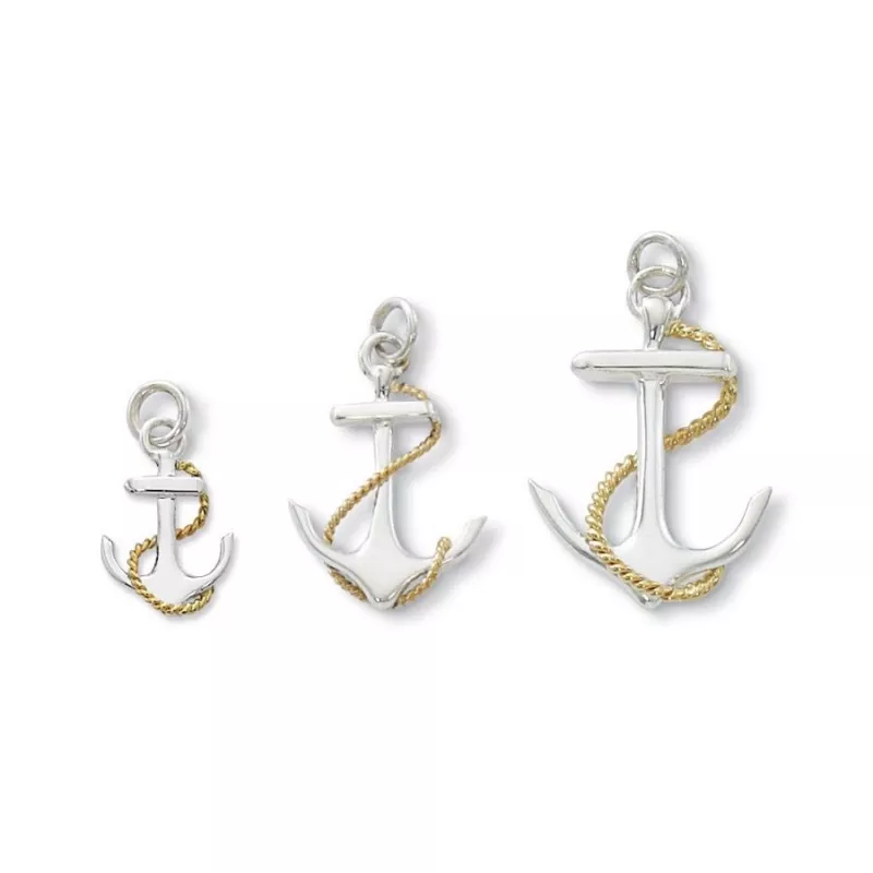 Style Newport's Sterling Silver Anchor Pendant with 14k Gold Rope.